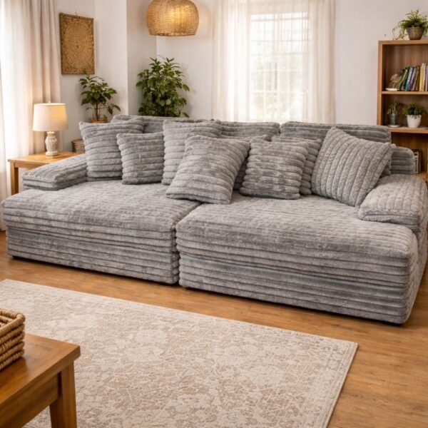 ספת DELTA היא ספה רחבה ומפנקת בעיצוב רך ונמוך, עם ריפוד בד עבה ובעל טקסטורה עשירה שמעניקה תחושת נוחות מקסימלית. המושבים העמוקים והכריות המרובות מאפשרים ישיבה ורביצה נוחה לאורך זמן, ומתאימים במיוחד לשימוש יומיומי ולסלון משפחתי.