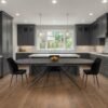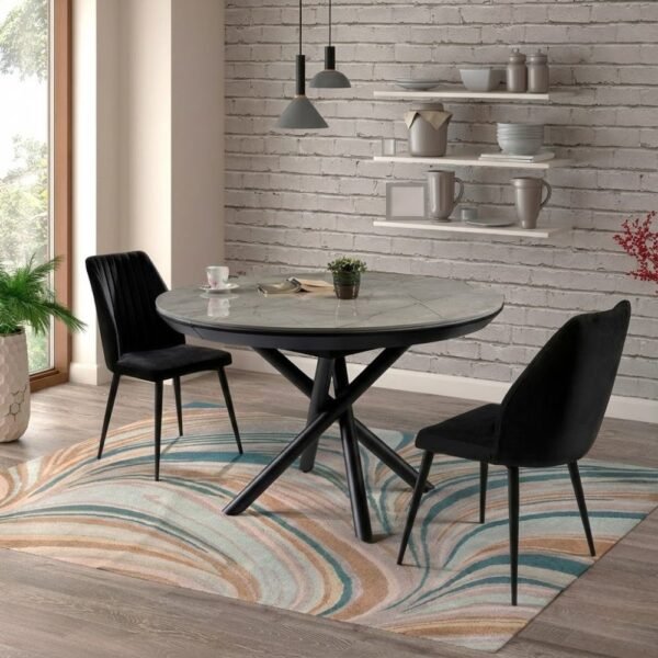 משטח עץ דמוי שיש / אלון ברמת גימור גבוהה, רגלי מתכת בצבע שחור