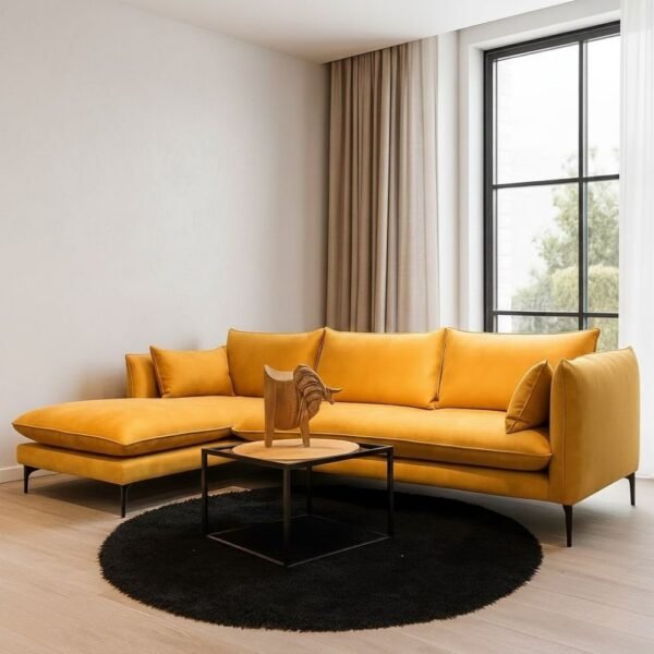 ספת פינה בגוון חרדל חי, שממלאת את החלל באור ובאנרגיה חמה. העיצוב הנקי, הקווים הרכים והישיבה העמוקה יוצרים שילוב מושלם בין נוחות יומיומית לבין מראה יוקרתי שמרגיש כמו הזמנה להתרווח. הריפוד נעים למגע, הרגליים השחורות מוסיפות טאץ׳ מודרני, וכל פרט מוקפד עד רמת הגימור — ספה שמגדירה את האופי של הבית ומושכת את העין בלי לעשות רעש.